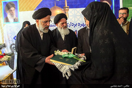 مراسم بهره برداری از مجتمع مسکونی شهدای مدافع حرم با حضور حجت الاسلام والمسلمین ابراهیم رئیسی تولیت آستان قدس رضوی در باقر شهر تهران انجام شد .