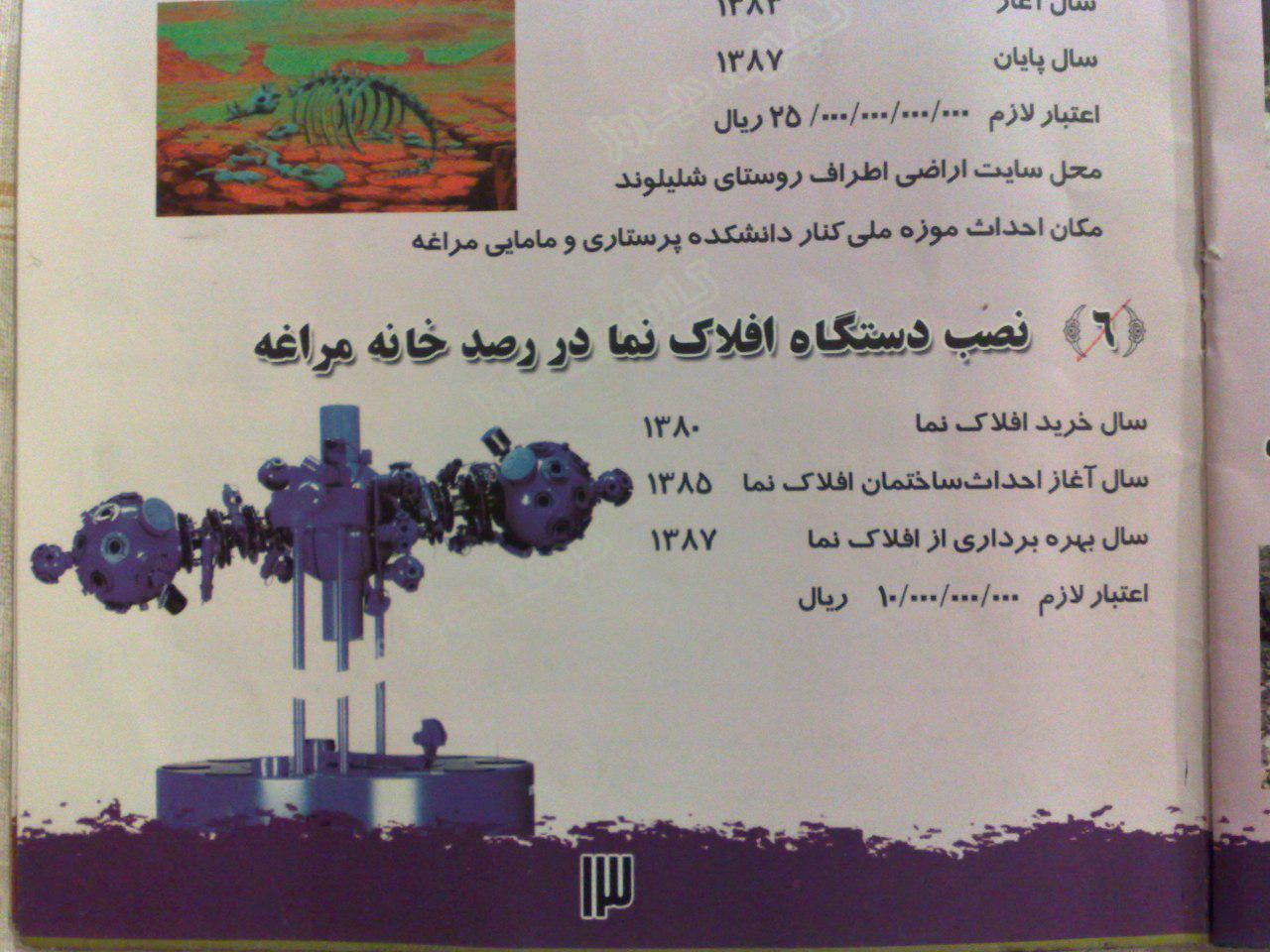 دستگاه آسمان نمای رصد خانه تاریخی مراغه با گذشت 16 سال از خرید آن همچنان بدون استفاده در انبار نگهداری می شود.