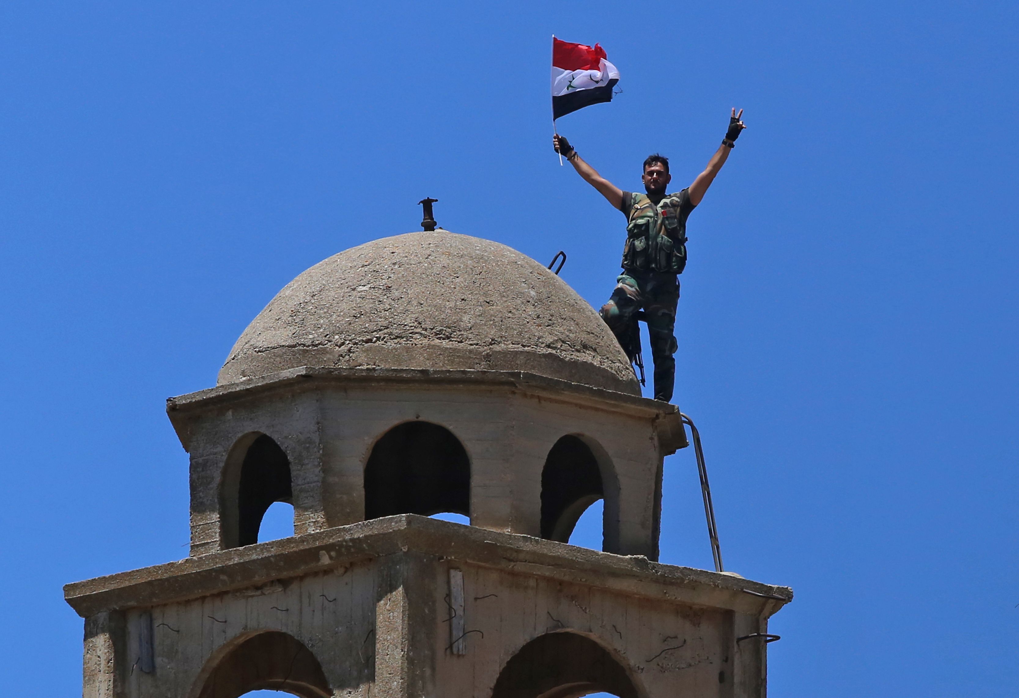 به گزارش سرويس بين الملل خبرگزاري صداوسيما؛ مردم سوريه با برپايي مراسمي آزادسازی قنیطره و پيروزي بر تروريستها را جشن گرفتند و پرچم سوريه را برفراز اين شهر به اهتزاز درآوردند.