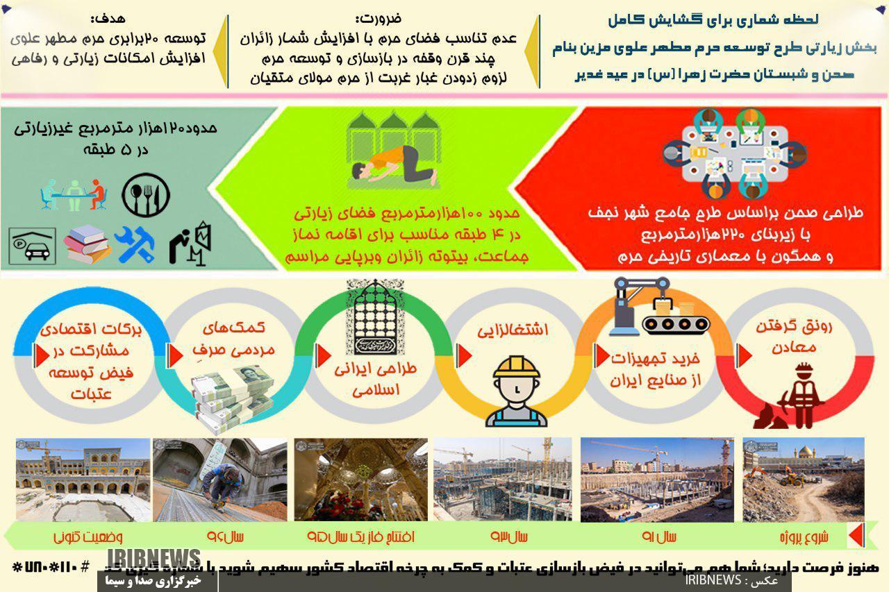 به گزارش خبرگزاری صدا و سیما به نقل از روابط عمومی ستاد بازسازی عتبات عالیات، در این بازدید، حسن پلارک رئیس ستاد بازسازی عتبات عالیات گزارشی از روند اجرای طرح، چگونگی تأمین مصالح طرح از صنایع داخلی و نحوه هزینه کرد نذورات مردمی برای رونق بخشیدن به صنایع داخلی و ویژگی‌های رفاهی و فنی طرح ارائه کرد.
