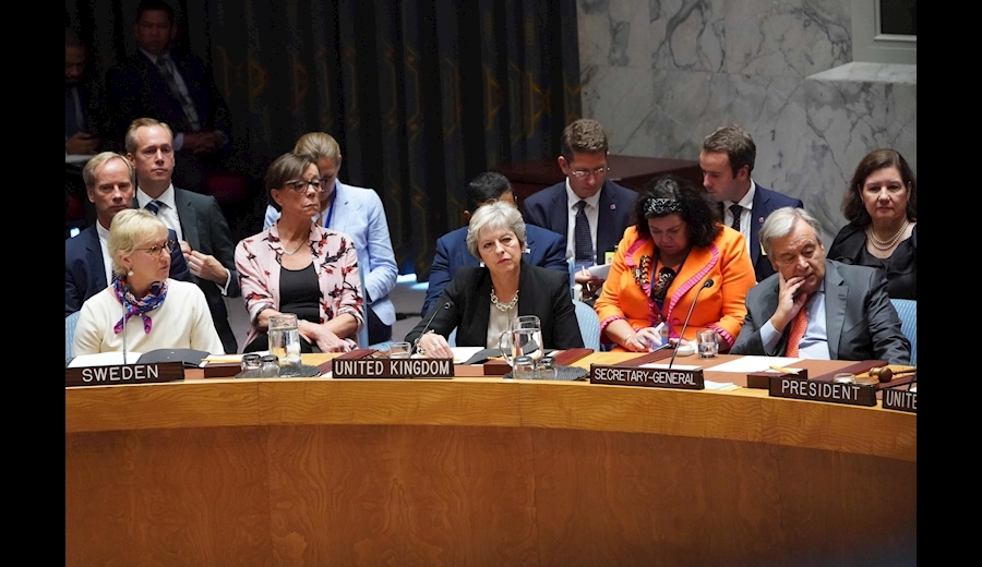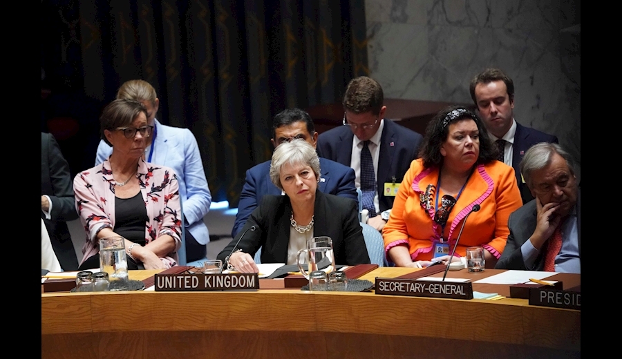 ترزا می این اظهارات را در یک نشست شورای امنیت سازمان ملل عنوان کرد که ریاست آن را دونالد ترامپ رئیس جمهور آمریکا بر عهده داشت.