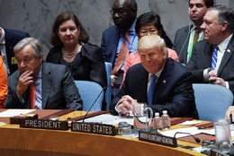 ترامپ در آغاز سخنان خود در جلسه شورای امنیت سازمان ملل متحد گفت: من افتخار دارم که امروز در این مکان حضور داشته باشم و ریاست این جلسه شورای امنیت سازمان ملل متحد را برعهده داشته باشم. همچنین افتخار می کنم که به سران محترم کشورها و دولت ها و وزرا و دیگران سران و نمایندگانی که در این جلسه حضور دارند خوش آمد بگویم. من همچنین به آنتونیو گوترش دبیر کل سازمان ملل متحد خوش آمد می گویم که در این جلسه به ما ملحق شده اند.