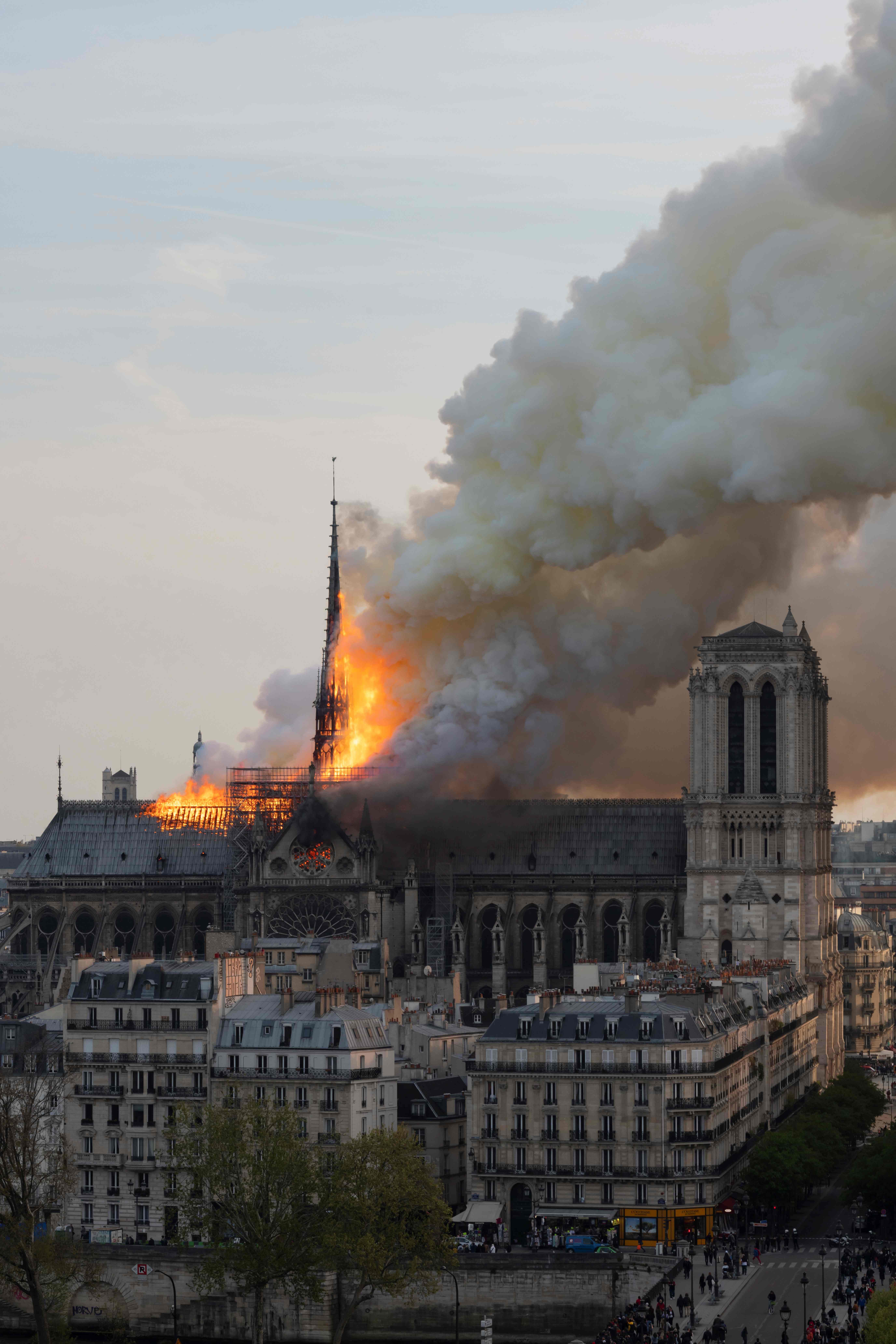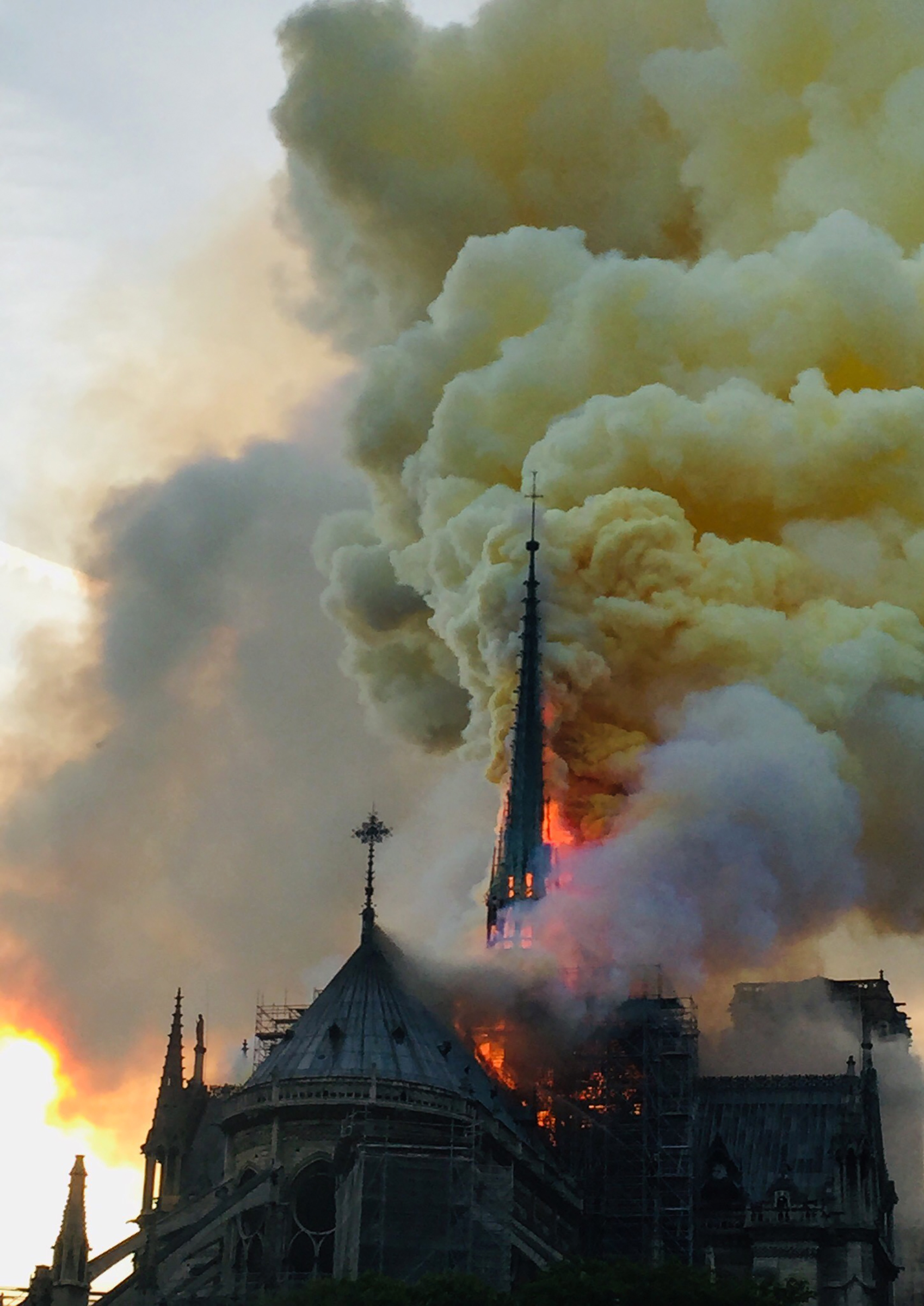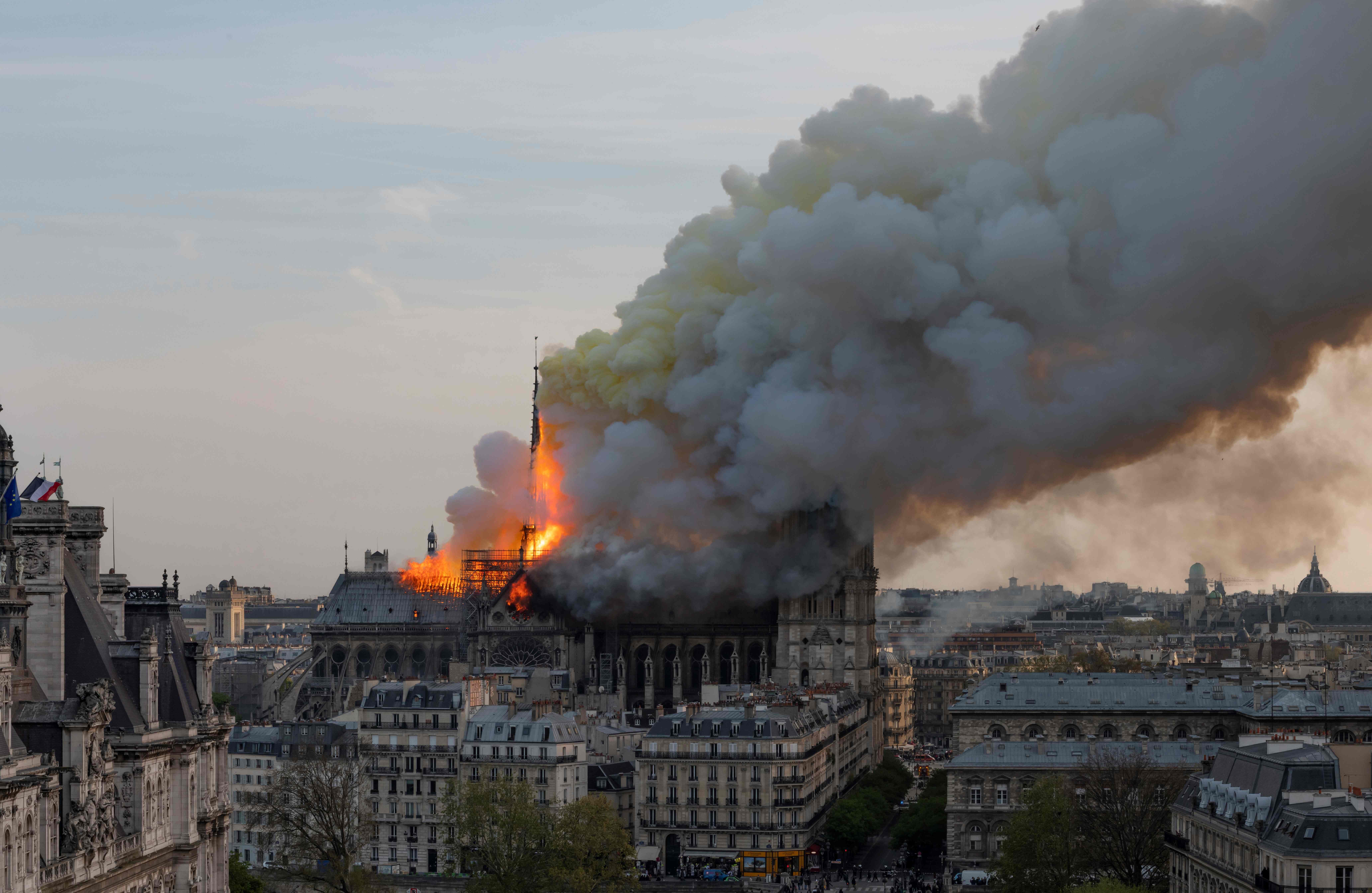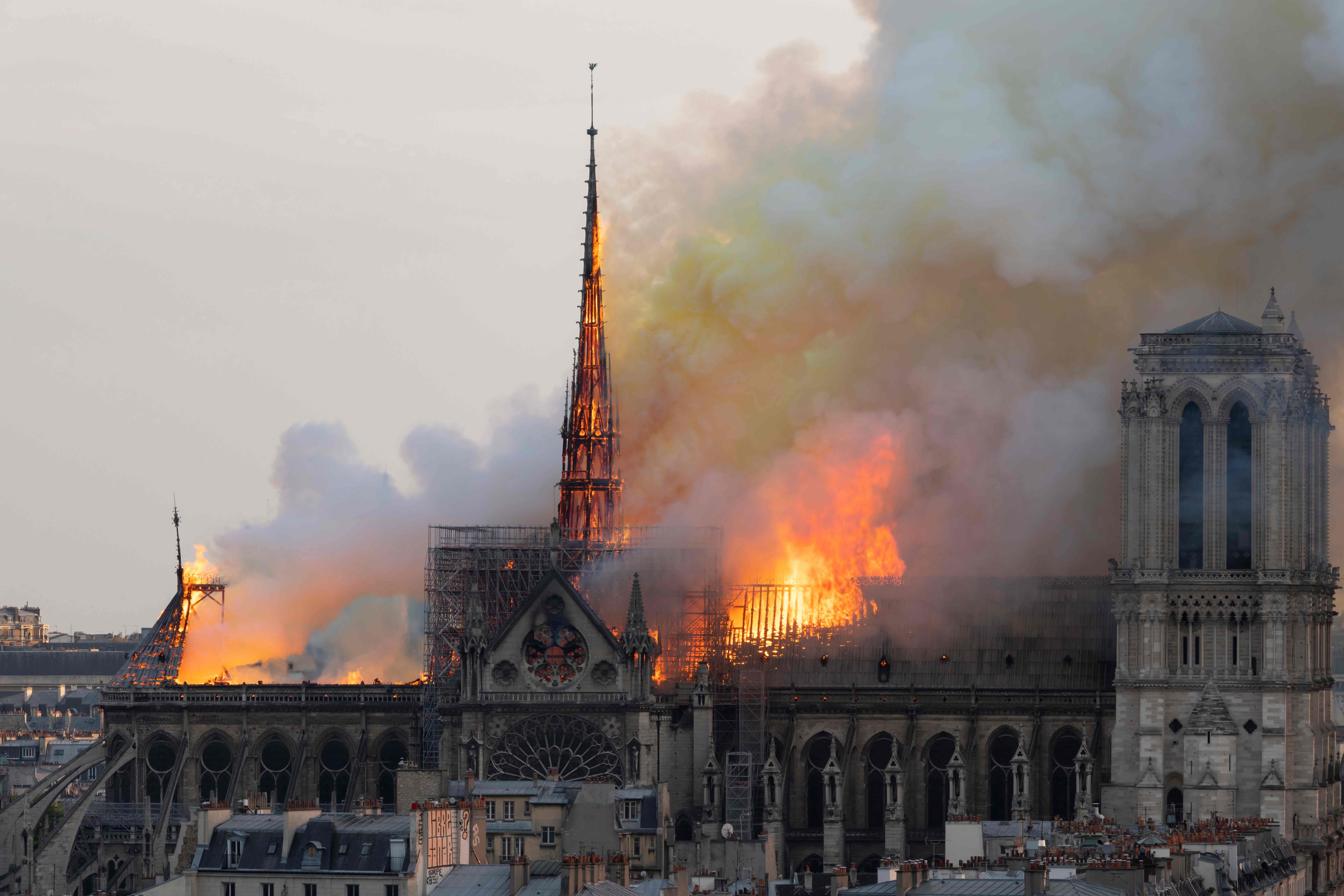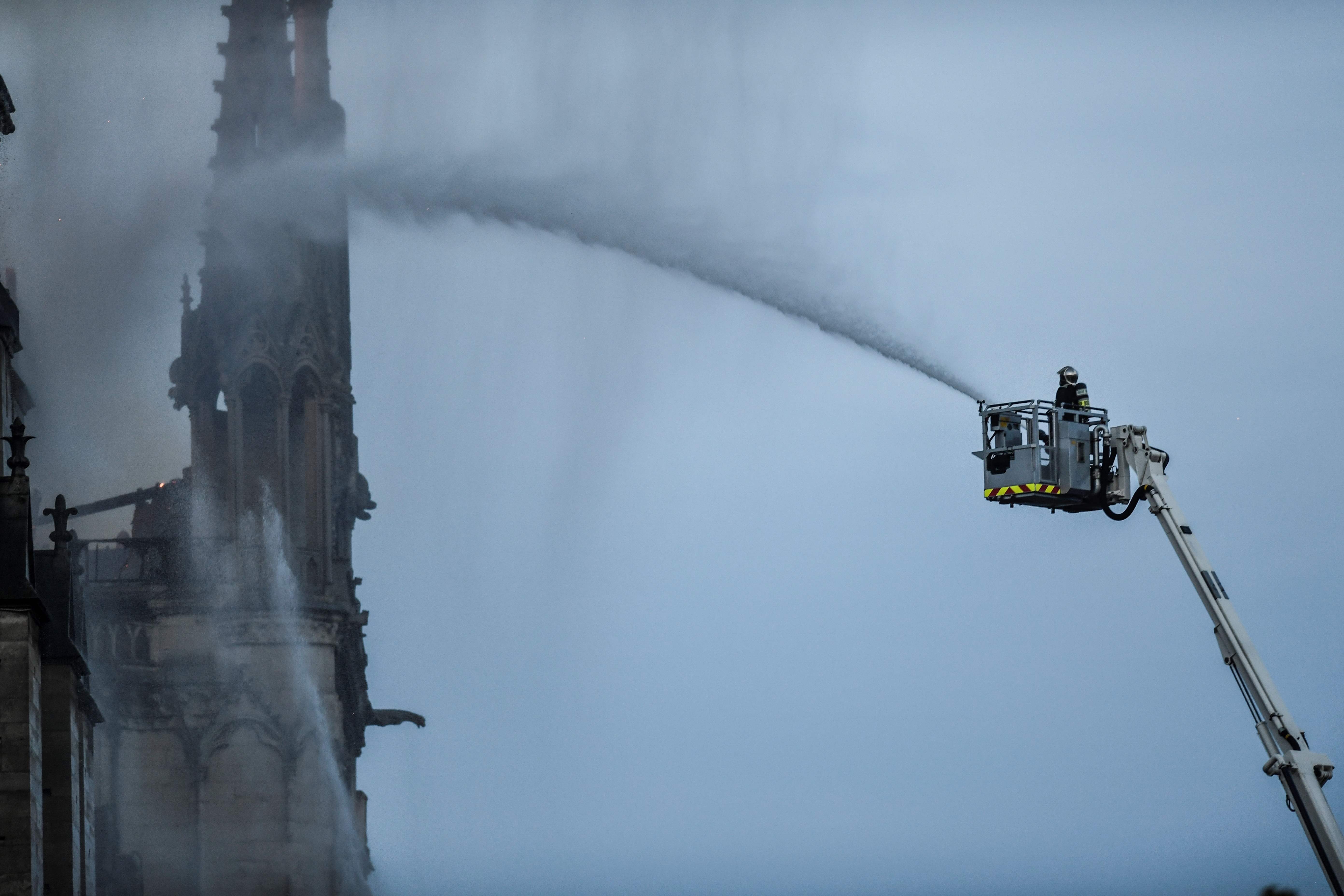 باوجود مهارشدن آتش سوزی در نوتردام پربازدیدترین کلیسای جهان با سالانه سیزده میلیون بازدیدکننده، آتش نشانان نتوانستند از فروریختن این کلیسای تاریخی جلوگیری کنند