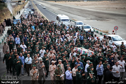 پیکر شهید مدافع وطن سید محسن نقیبی از تکاوران یگان صابرین سپاه پاسداران انقلاب اسلامی که در درگیری با اشرار مرز پاکستان به شهادت رسید در نیروی زمینی سپاه تشییع شد .