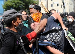به گزارش خبرگزاری اسوشیتدپرس، تظاهرکنندگان پارچه نوشتههایی با پیامهای ضدنژادی و ضددولتی حمل میکردند.
