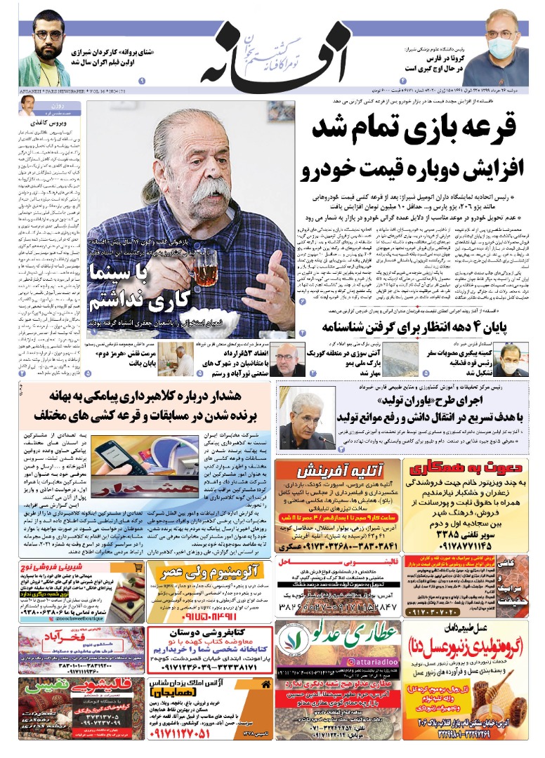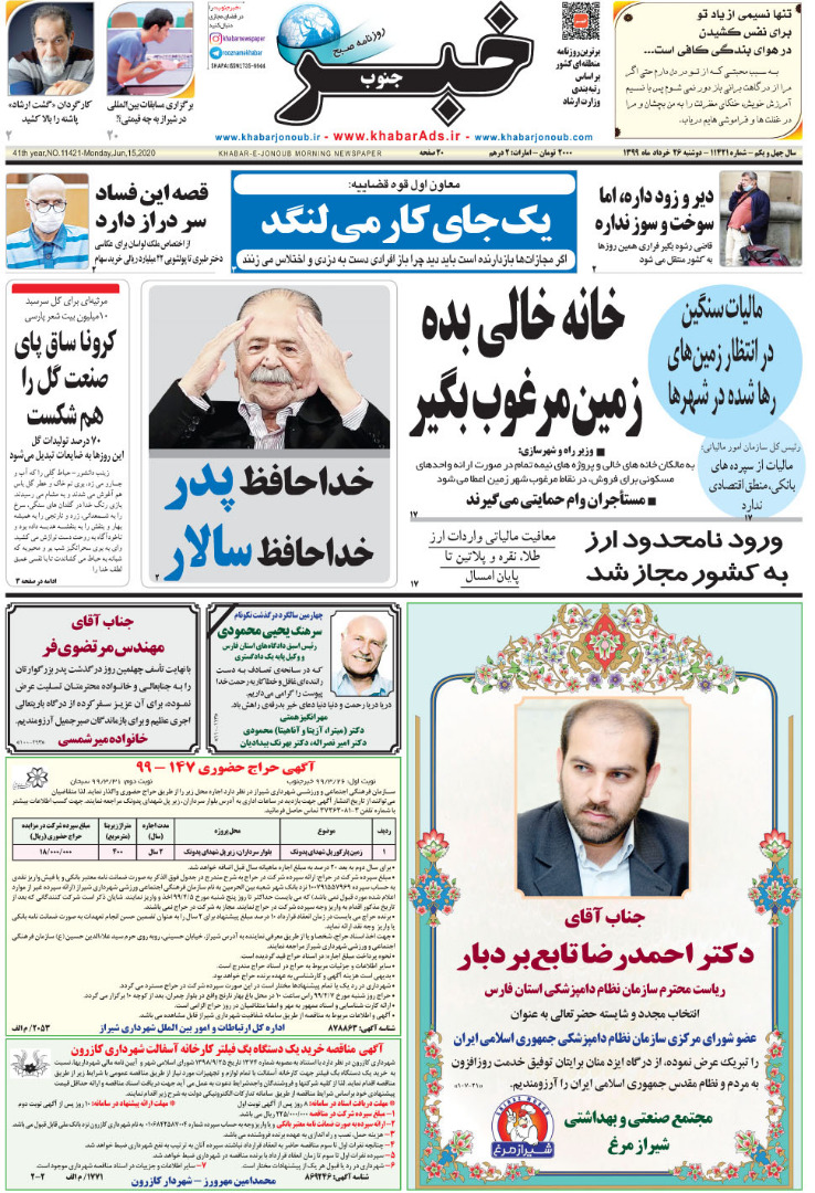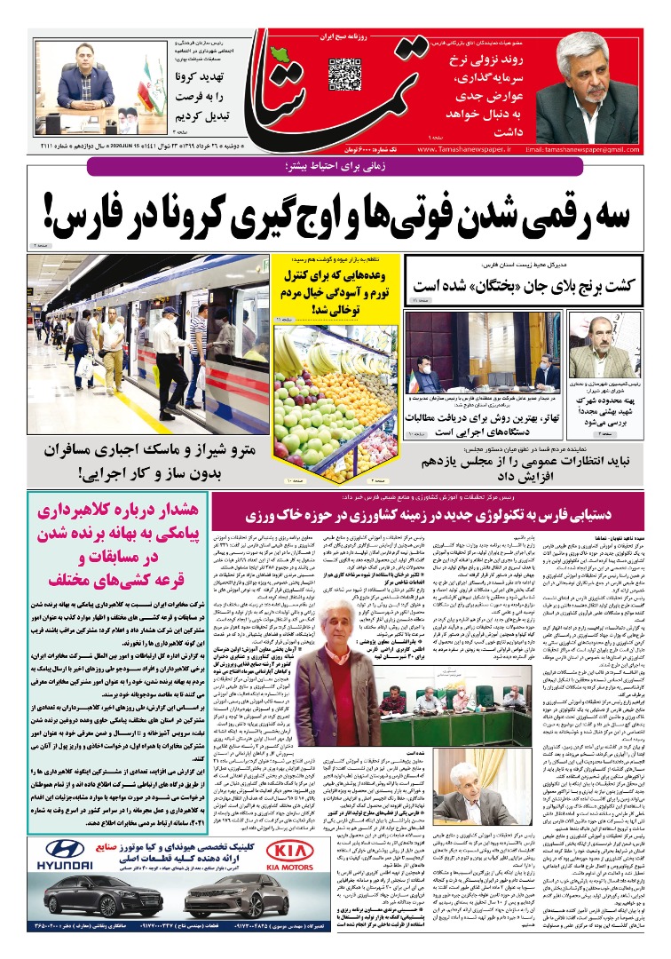 به گزارش خبرگزاری صدا و سیما، مرکز فارس، صفحات نخست روزنامه‌های امروز دوشنبه ۲۶ خرداد فارس را ببینید.