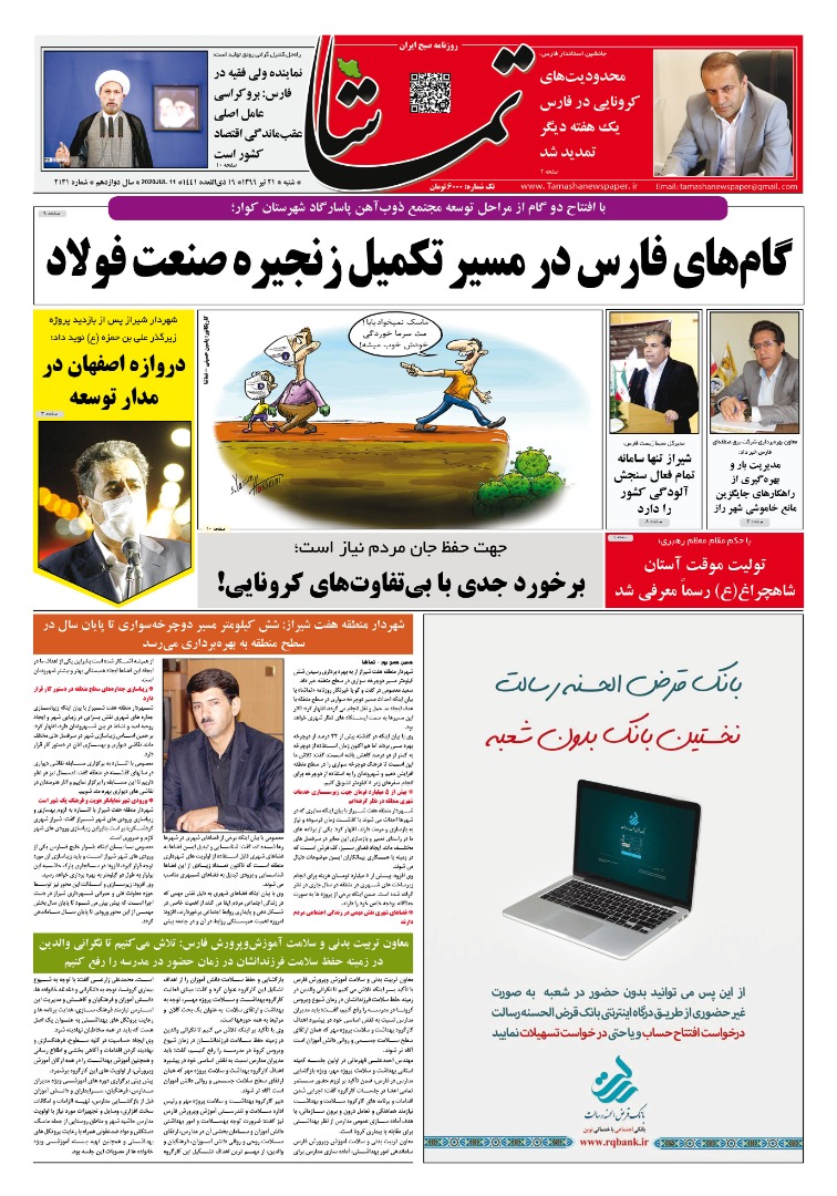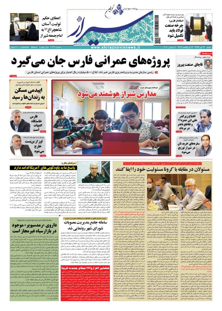 به گزارش خبرگزاری صدا و سیما، مرکز فارس، صفحات نخست روزنامه‌های امروز شنبه ۲۱ تیر فارس را ببینید.