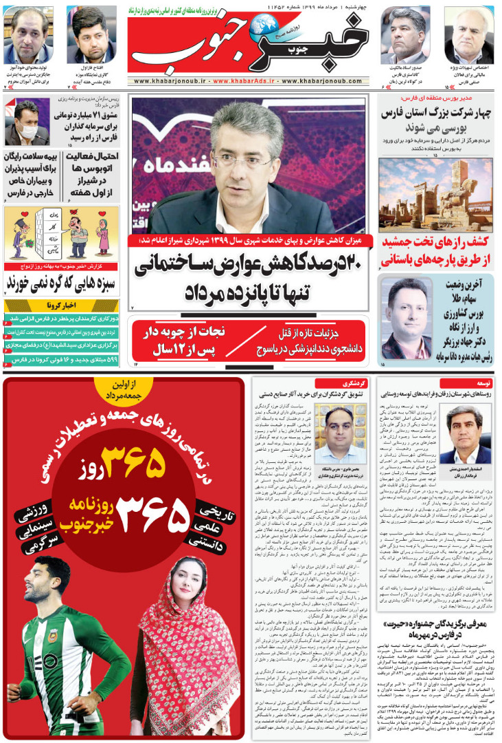 صفحه نخست روزنامه‌های فارس یکم مرداد