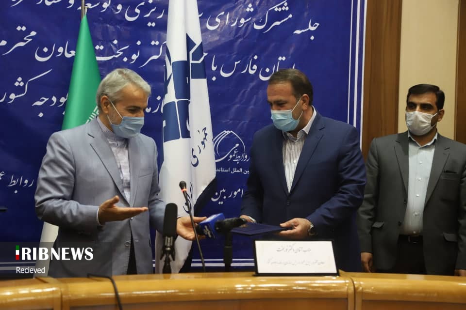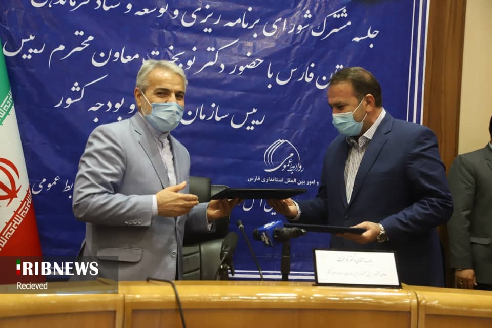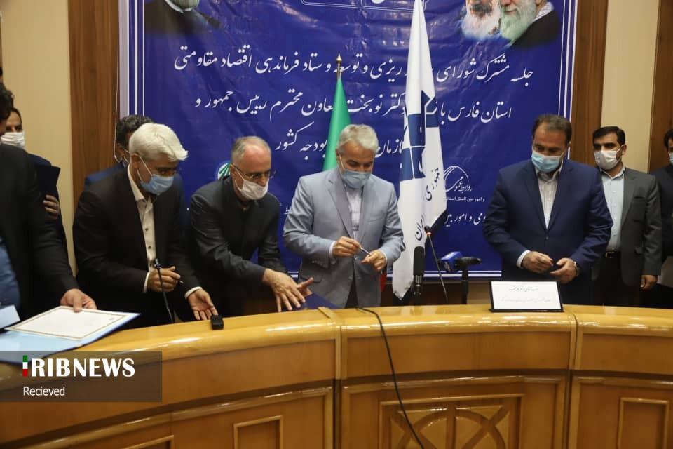 به گزارش خبرگزاری صدا و سیما، مرکز فارس، در جلسه مشترک شورای برنامه‌ریزی و توسعه و ستاد فرماندهی اقتصاد مقاومتی استان که با حضور رییس سازمان برنامه و بودجه کشور ترتیب یافت سه تفاهم نامه جهش تولید برای ۳۸ طرح اقتصادی، تفاهم‌نامه بنیاد مسکن انقلاب اسلامی و سازمان برنامه و بودجه برای ساخت ۳۵۰۰ واحد مسکن محرومین و تفاهم‌نامه توسعه و بروز رسانی زیرساخت‌های فنی صدا و سیمای مرکز فارس به امضا رسید.