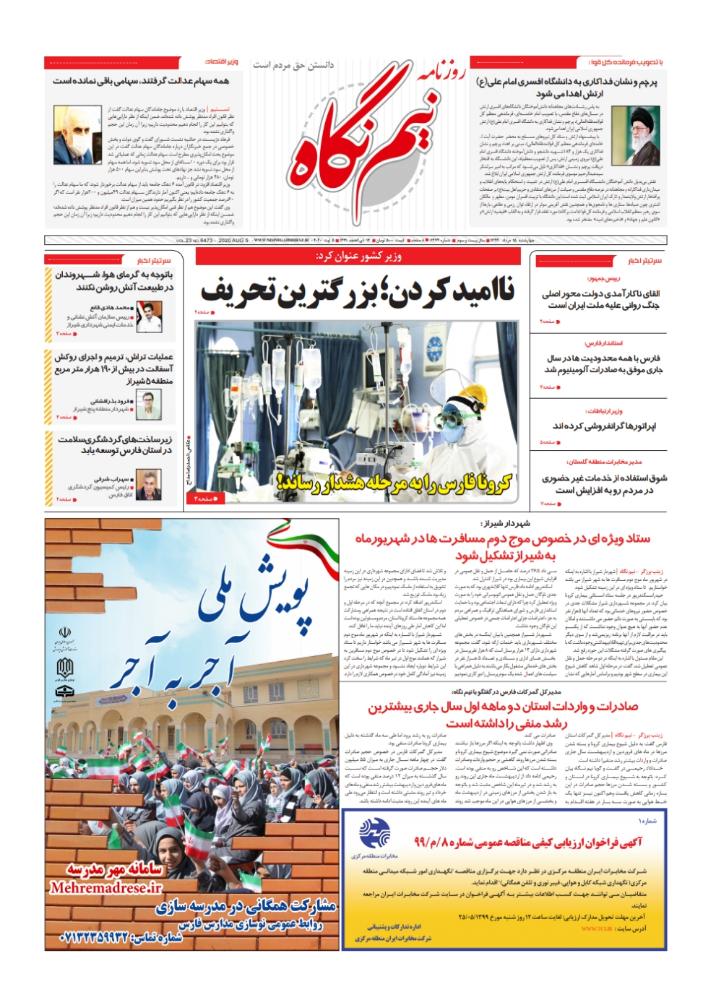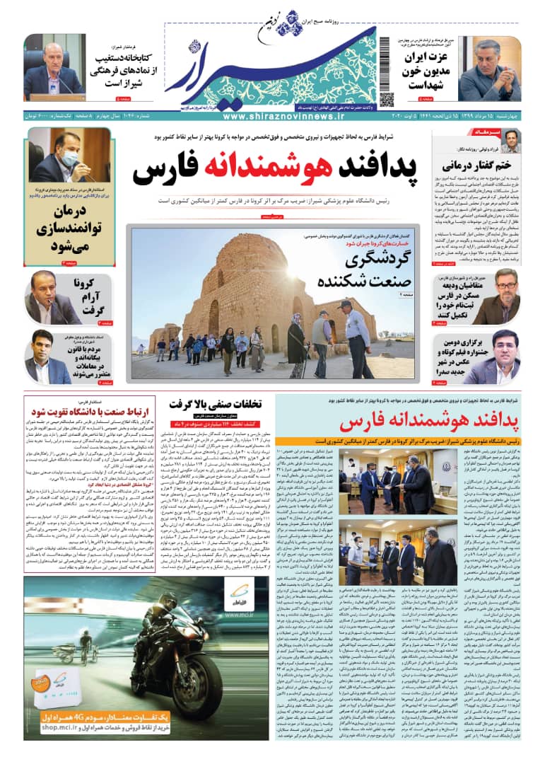 به گزارش خبرگزاری صدا و سیما، مرکز فارس، صفحات نخست روزنامه‌های امروز چهارشنبه پانزدهم مرداد فارس را ببینید.