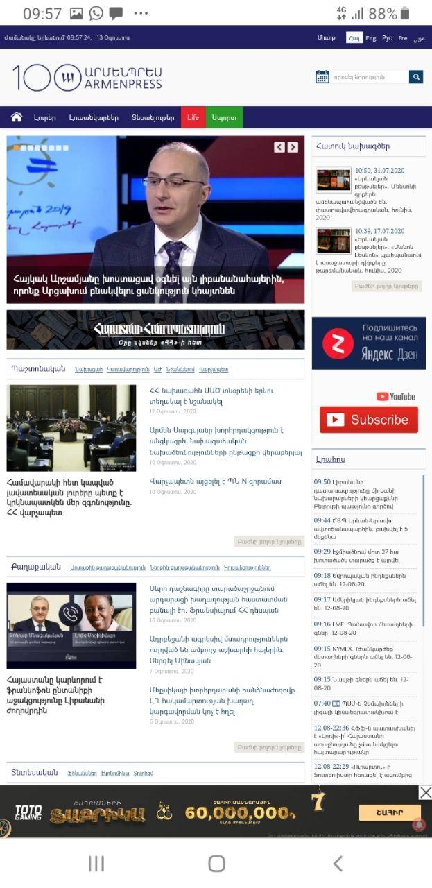 - دولت ارمنستان: امروز وظیفه ماست تا به بخش گردشگری کشور که بیشترین زیان را از ویروس کرونا دیده است، کمک کنیم.