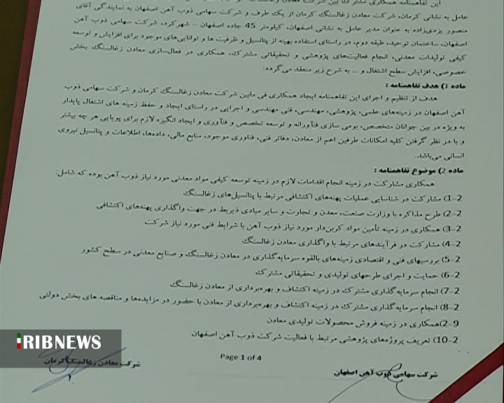 تفاهم نامهی جدیدی ما بین شرکت سهامی ذوب اهن اصفهان و شرکت معادن ذعالسنگ کرمان برای کاهش واردات ذغال سنگ منعقد شد.