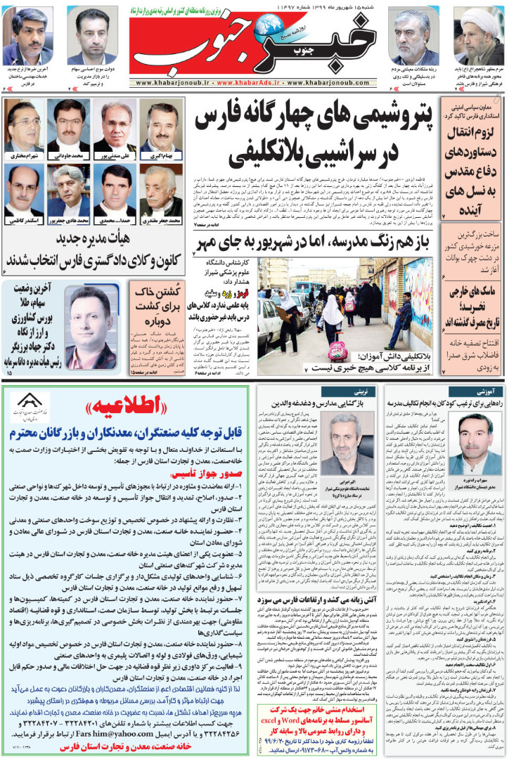 صفحه نخست برخی روزنامه‌های فارس پانزدهم شهریور
