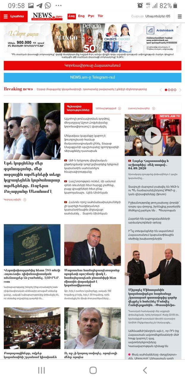 آرمن پرس- روز گذشته ۱۹۰ نفر در ارمنستان مبتلا به ویروس کرونا شده اند، ۴۰۰ نفر مداوا شده اند.۴ نفر جان باخته اند.