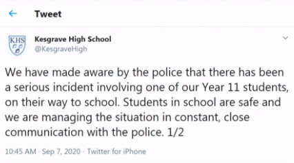 به گزارش سرویس بین الملل خبرگزاری صدا و سیما به نقل از بی بی سی؛ تیراندازی برای یکی از دانش آموزان پایه یازدهم دبیرستانی در شهر «کسگِرِیو» (Kesgrave) انگلیس رخ داد. این دانش آموزان پیاده به سمت مدرسه در حال حرکت بود که حادثه تیراندازی رخ داد.
