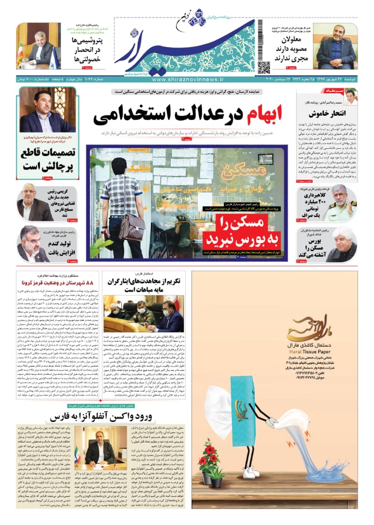 به گزارش خبرگزاری صدا و سیما، مرکز فارس، صفحات نخست روزنامه‌های امروز بیست و چهارم شهریور فارس را ببینید.