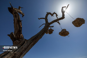به گزارش گروه عکس خبرگزاری صدا وسیما؛ درویش خان اسفندیارپور، مردی بود کر و لال که با خانوادهاش در ۴۰ کیلومتری سیرجان از طریق دامداری و کشاورزی زندگی میکرد. او پس از اصلاحات ارضی در سال ۱۳۴۰ برای اعتراض به خاطر از دست دادن املاکش، دست از باغداری برداشت تا اینکه همه درختان زمین باقی مانده او (پس از تقسیم اراضی) خشک شدند. او به همه شاخههای درختهای میوه سنگ آویزان کرده بود و از آنها چون میوه حقیقی مراقبت میکرد. درویشخان از طایفه بچاقچی یکی از طوایف اصیل سیرجان بود که شکارچی بودهاند.درویش خان اسفندیارپور ۱۸ فروردین ۱۳۸۶ در ۸۳ سالگی درگذشت و پیکرش در این باغ دفن شد.