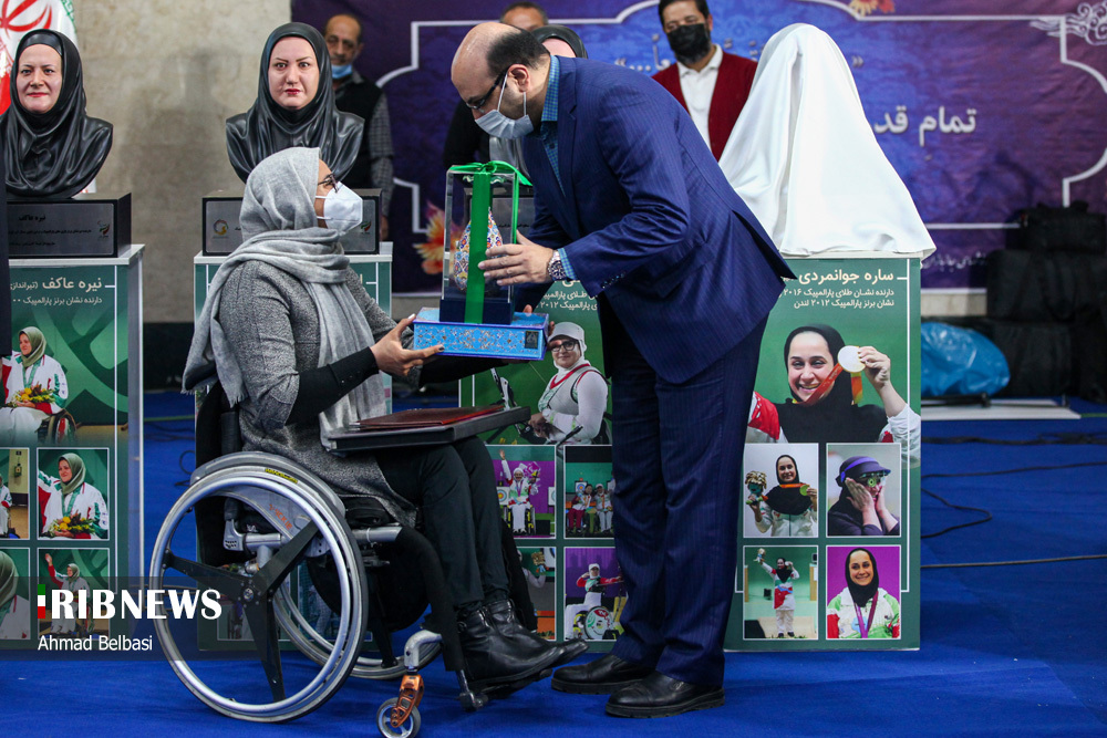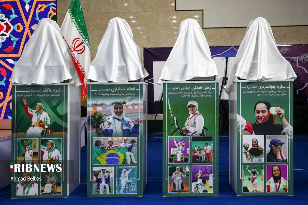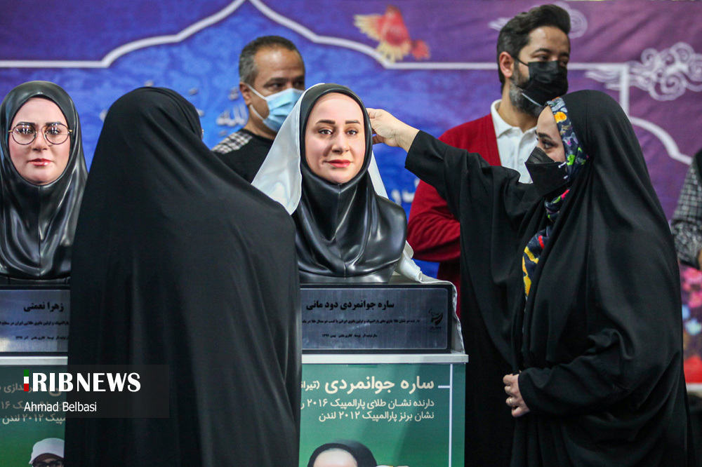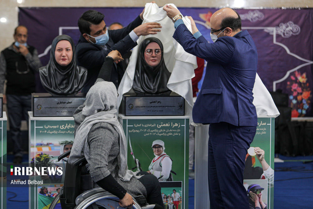 به گزارش گروه عکس خبرگزاری صدا و سیما؛ مراسم ویژه رونمایی از سردیس بانوان مدال آور پارالمپیکی به مناسبت بیستمین سال تاسیس کمیته ملی پارالمپیک و مصادف با میلاد حضرت زهرا (س) با حضور سید رضا صالحی امیری رئیس کمیته ملی المپیک، مهدی علی نژاد معاونت توسعه ورزش حرفه‌ای و قهرمانی وزارت ورزش، محمود خسروی وفا رئیس کمیته ملی پارالمپیک، طاهره طاهریان نایب رئیس کمیته ملی المپیک، شروین اسبقیان رئیس فدراسیون جانبازان و معلولان و تعدادی از بانوان مدال آور پارالمپیکی برگزار شد. در این مراسم از تندیس زهرا نعمتی (تیروکمان)، نیره عاکف (تیراندازی)، اعظم خدایاری (دوومیدانی) و ساره جوانمردی (تیراندازی) رونمایی شد. در این مراسم همچنین از دختر مرحوم راضیه شیرمحمدی (کماندار پارالمپیکی) با دادن لوح قدردانی شد.