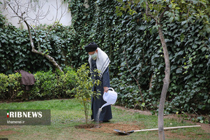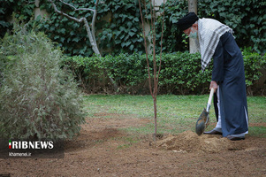 بهمناسبت روز درختکاری، حضرت آیتالله خامنهای پیش از ظهر امروز (جمعه) در محوطهی دفتر رهبری دو نهال میوه کاشتند.