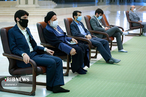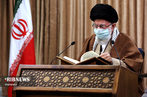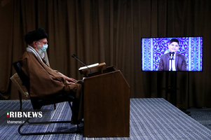 به گزارش گروه عکس خبرگزاری صدا و سیما؛ براساس شیوه نامه‌های بهداشتی ستاد ملی مبارزه با کرونا مبنی بر برگزار نشدن تجمعات انسانی، مراسم امسال به صورت ارتباط تصویری و صرفاً با حضور جمعی از قاریان ممتاز کشور در شبستان مصلای امام خمینی (ره) تهران برگزار شد.رهبر معظم انقلاب اسلامی در این دیدار ضمن تبریک حلول ماه مبارک رمضان ماه نزول قرآن به تبیین موضوع هدایت قرآنی پرداختند و درخصوص گستره و ابعاد آن گفتند: هدایت قرآنی شامل همه بشریت و دربرگیرنده ابعاد مختلف فردی و اجتماعی زندگی انسان می‌شود.
