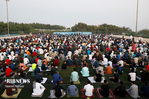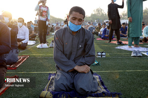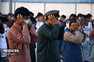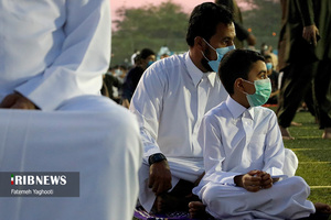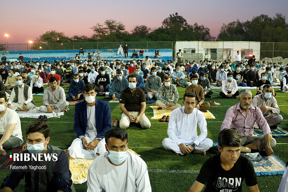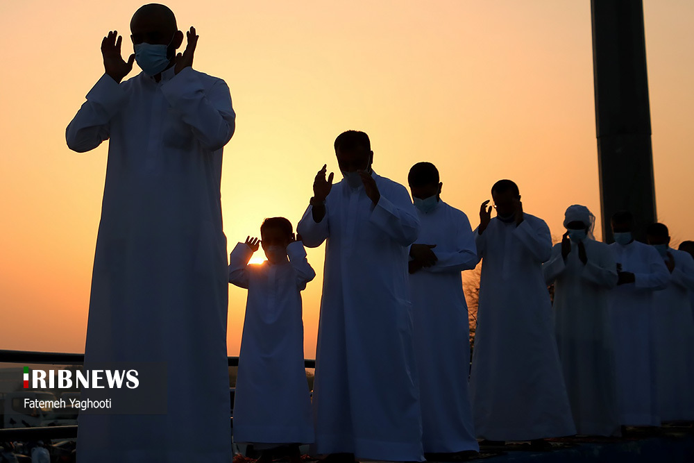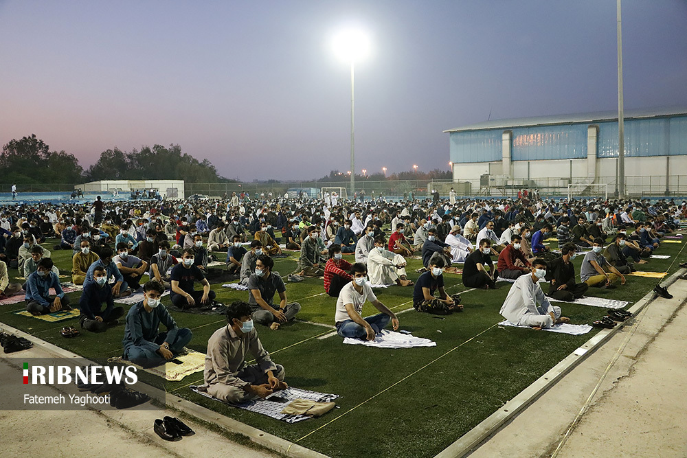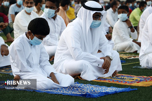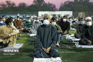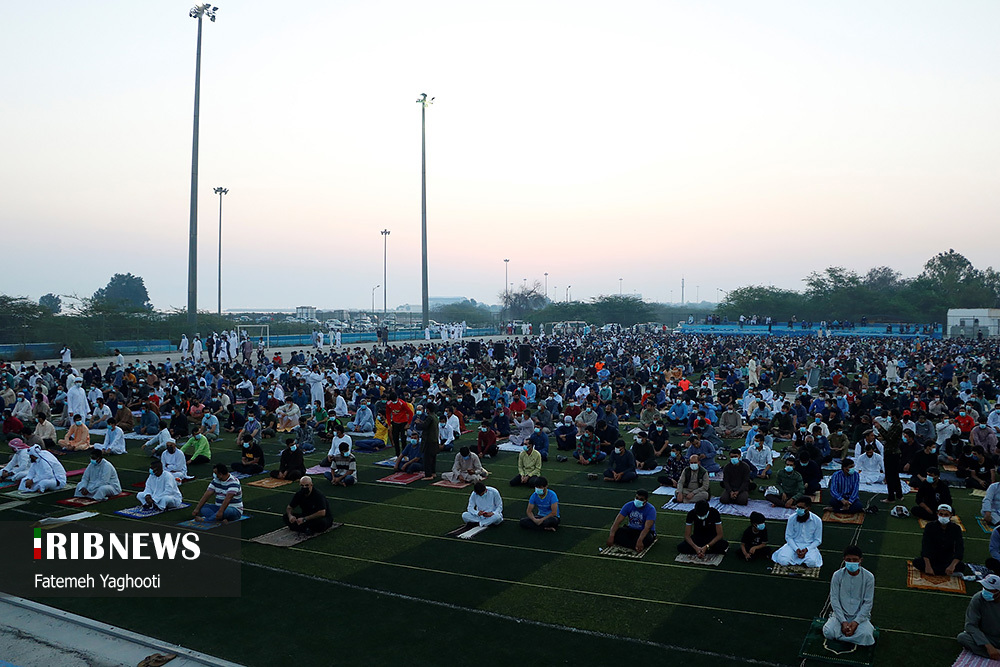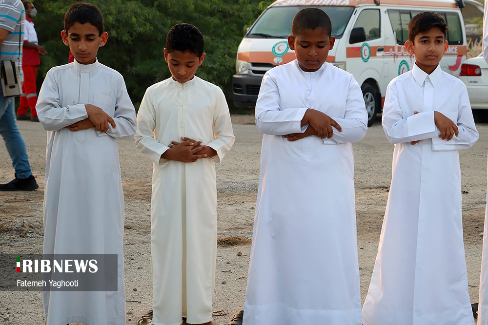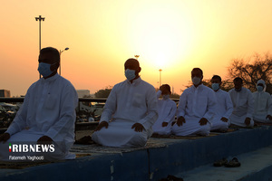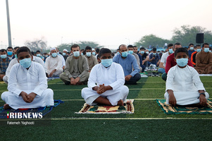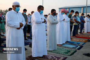 مردم مومن و خداجوی اهل سنت جزیره کیش در صبحگاه روز عیدفطر در صفوف پر شکوه نماز عید قامت عاشقی بستند.