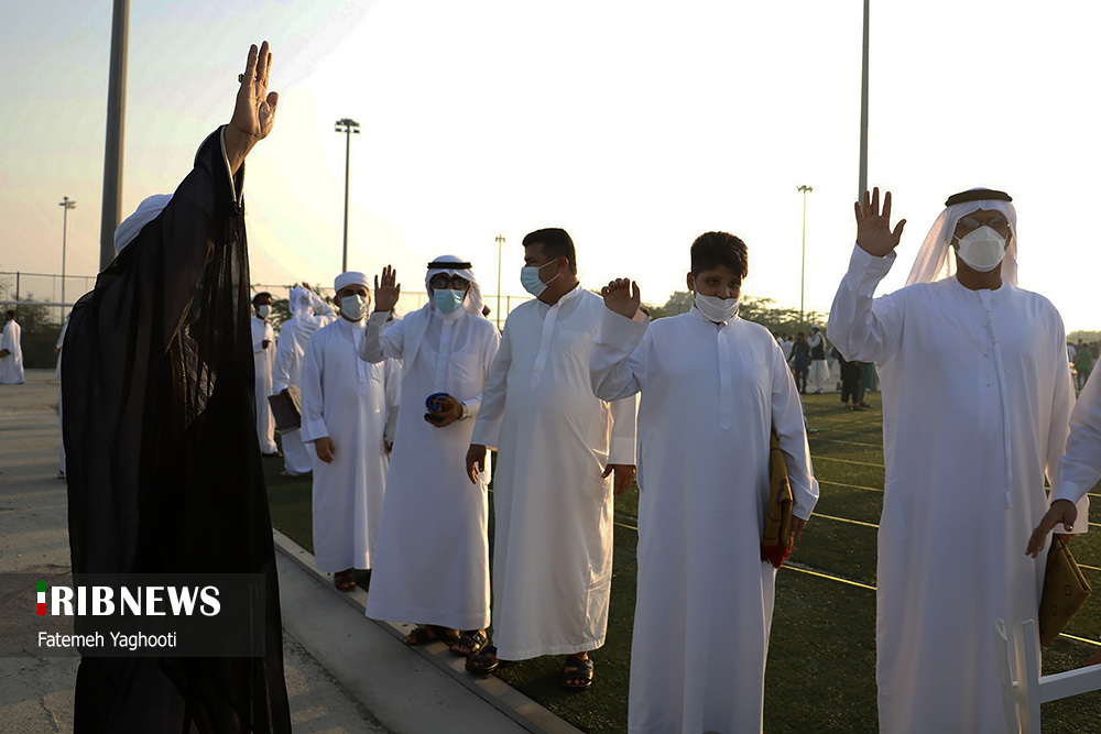 به گزارش خبرگزاری صداوسیما مرکز کیش، نماز با شکوه عید سعید فطر با حضور بومیان و اهل سنت جزيره کیش به امامت شیخ یعقوب شمس امام جمعه اهل سنت كيش در مجموعه ورزشی میرمهنا برگزار شد.