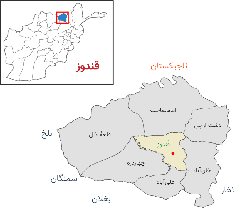 قندوز: این شهر در منطقه تاریخی تخارستان باختر، در حوالی محل تلاقی رودخانه قندوز با رودخانه خان آباد واقع شده است. قندوز از طریق شاهراهها با کابل از جنوب، مزارشریف از غرب و بدخشان از شرق ارتباط دارد.