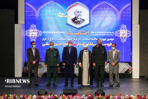 اختتامیه دومین دوره دو سالانه انتخاب آثار برتر جبهه مقاومت و دفاع از حرم جایزه سردار سرلشگر پاسدار شهید حاج حسین همدانی با حضور دکتر قالیباف رئیس مجلس شورای اسلامی و فرماندهان لشگری و کشوری در باغ موزه دفاع مقدس برگزار شد.