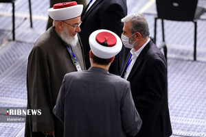همزمان با عید بزرگ میلاد باسعادت پیامبر اعظم (ص) و امام صادق (ع)، سران قوا، جمعی از مسئولان نظام و میهمانان شرکتکننده در سیوپنجمین کنفرانس بینالمللی وحدت اسلامی، صبح امروز یکشنبه دوم آبان ماه با حضرت آیتالله خامنهای رهبر انقلاب اسلامی دیدار کردند. این دیدار طبق ضوابط و آئیننامههای ستاد مقابله با کرونا و با رعایت دستورالعملهای بهداشتی در محل حسینیه امام خمینی (ره) برگزار شد