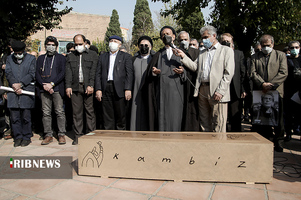 مراسم تشییع پیکر کامبیز درمبخش هنرمند پرآوازه کارتونیست معاصر ایران صبح امروز سه‌شنبه ۱۸ آبان ماه ۱۴۰۰ با حضور جمعی از مدیران هنری و هنرمندان هنر‌های تجسمی در محوطه خانه هنرمندان ایران برگزار شد