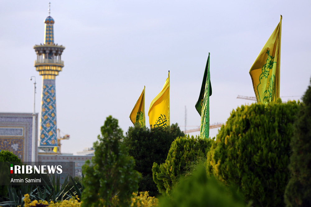 اهتزاز پرچم حرم حضرت علی ابن موسی الرضا (ع) در منطقه ۱۳