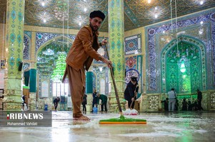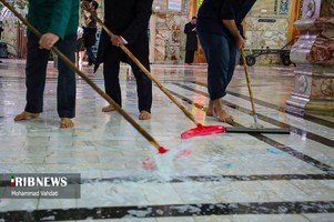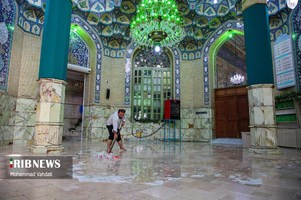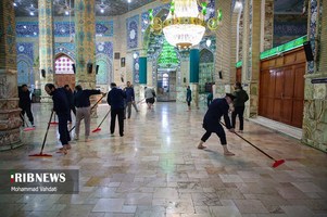 در آستانه ولادت حضرت ولیعصر (عج) مسجد مقدس جمکران توسط خادمین این مسجد غبار روبی و شست شو شد