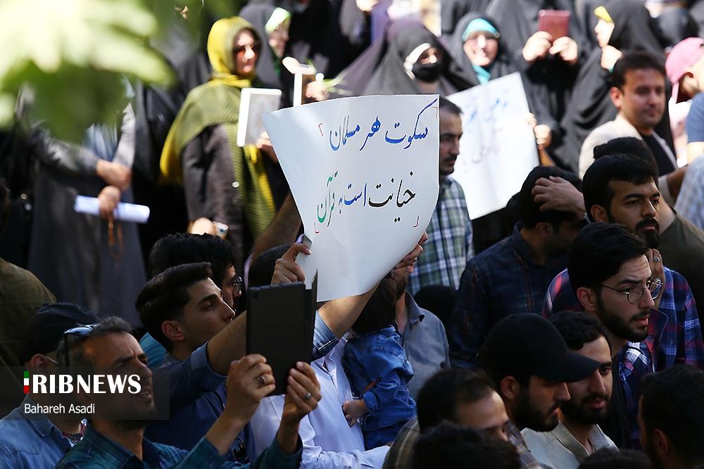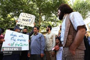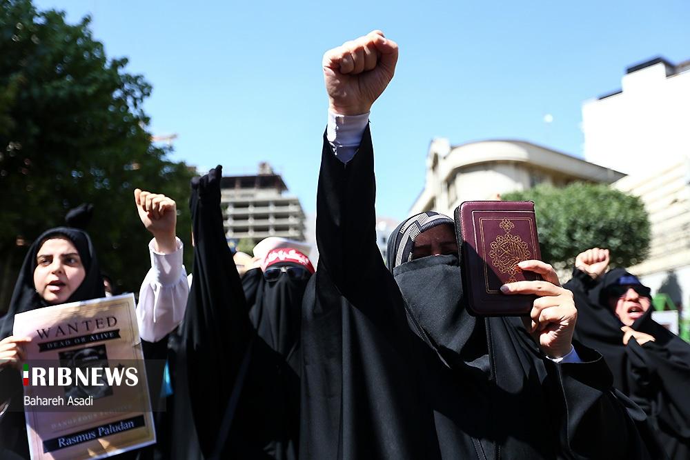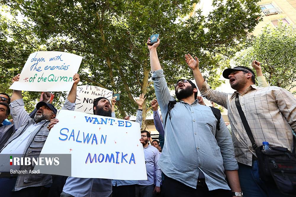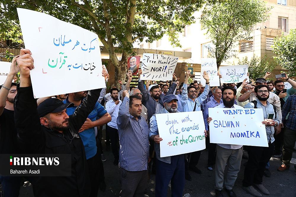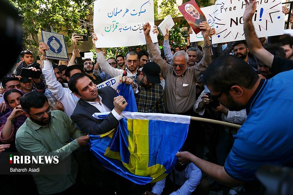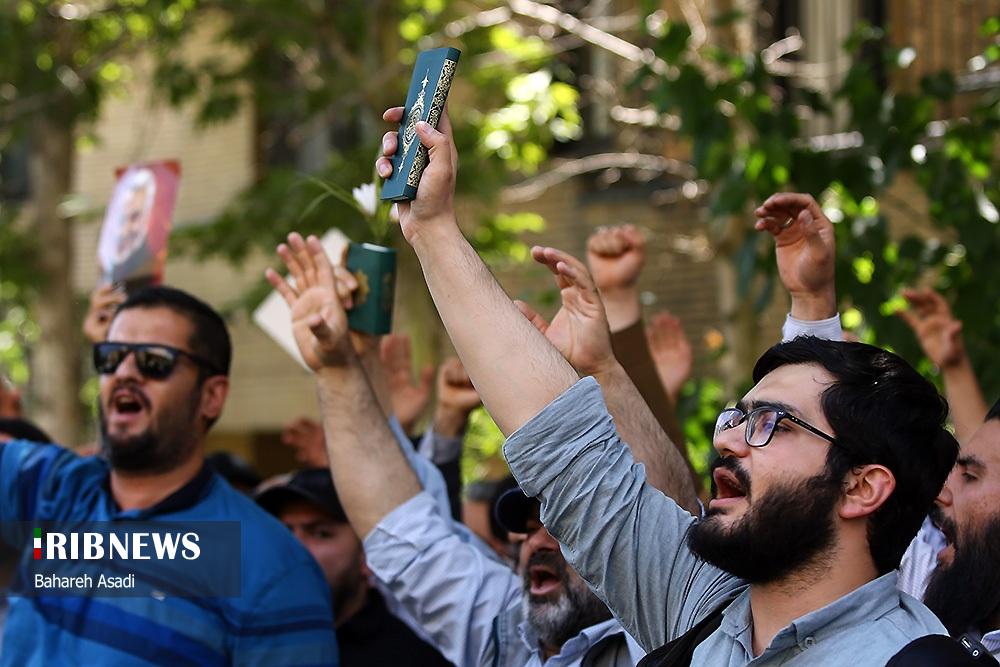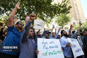 تجمع اعتراضی مقابل سفارت سوئد در محکومیت هتک حرمت به قرآن کریم