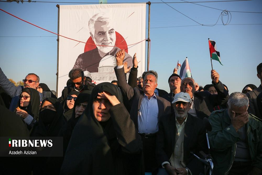 تجمع مردم قم , اصفهان و گرگان در حمایت از مردم فلسطین و محکومیت جنایات رژیم صهیونیستی، امروز شنبه ۲۷ آبان ۱۴۰۲ و همزمان در سراسر ایران برگزار شد. ارتش رژیم اشغالگر قدس از ۴۲ روز پیش با چراغ سبز غرب جنگ ویران کننده‌ای را علیه نوار غزه آغاز کرده که در پی آن بیش از ۱۱ هزار و ۵۰۰ فلسطینی شهید شده‌اند. از این تعداد ۴۷۱۰ نفر کودک و۳۱۶۰ نفر زن بودند.