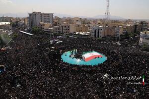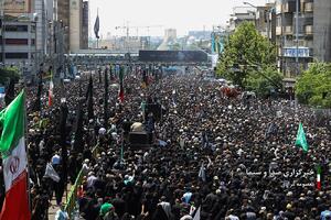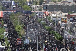 مراسم تشییع پیکر رئیس جمهور شهید و همراهان ایشان، در تهران انجام شد. مردم پایتخت از ساعات ابتدایی صبح امروز ۲ خرداد ۱۴۰۳ برای بدرقه شهدای خدمت به خیابان‌ها آمدند. موج عظیمی از این جمعیت برای اقامه نماز به امامت مقام معظم رهبری به سمت دانشگاه تهران حرکت کردند و بخش دیگر مردم هم در مسیر به سمت میدان آزادی مستقر شدند.