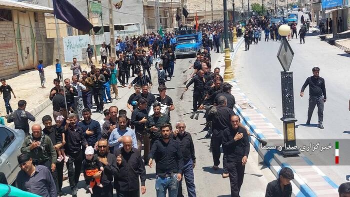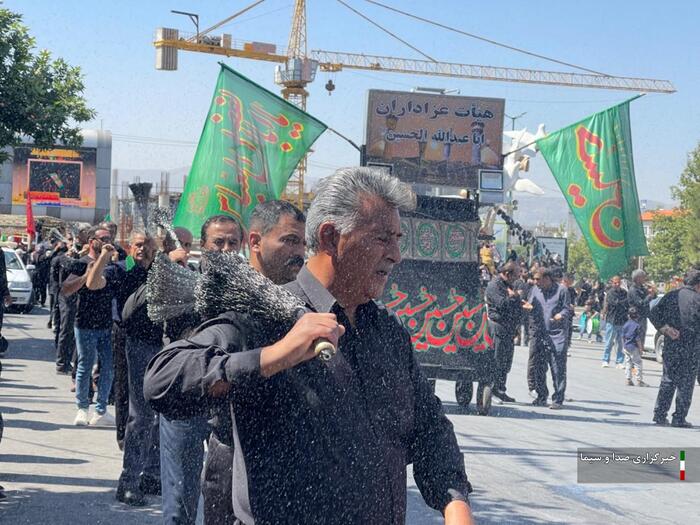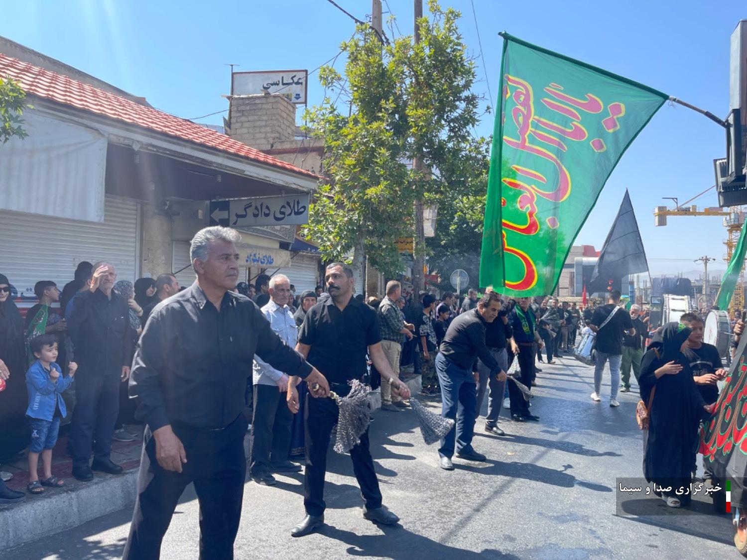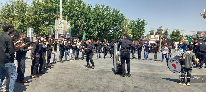 دستههای عزاداری با شیوههای مختلف به سوگواری میپردازند. گروهی از جوانان با زنجیرزنی، ضرباهنگی منظم ایجاد کردهاند که با نوای نوحهها هماهنگ است. عدهای دیگر با سینهزنی و تکرار ذکر "یا حسین" عزاداری میکنند. گروهی نیز با حمل علمهای بزرگ و کتلهای مزین به نام امام حسین (ع) و دیگر شهدای کربلا، ارادت خود را به ساحت مقدس اهل بیت (ع) نشان میدهند.