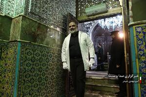 غبارروبی مضجع مطهر رضوی در سفر رهبر انقلاب به مشهد مقدس