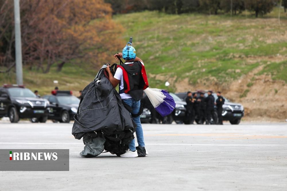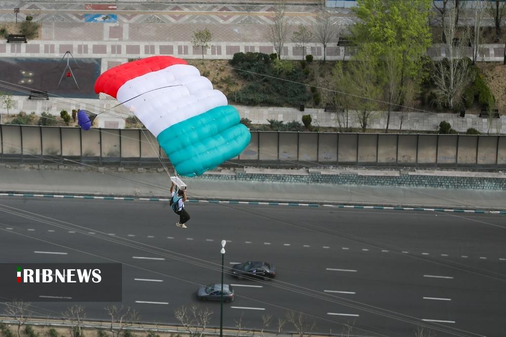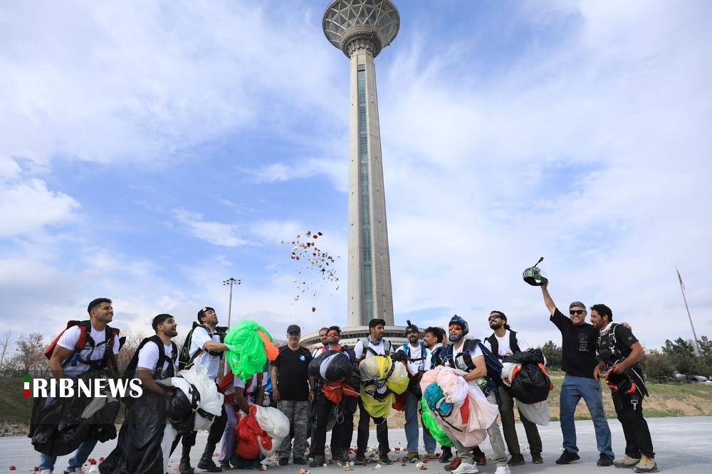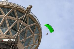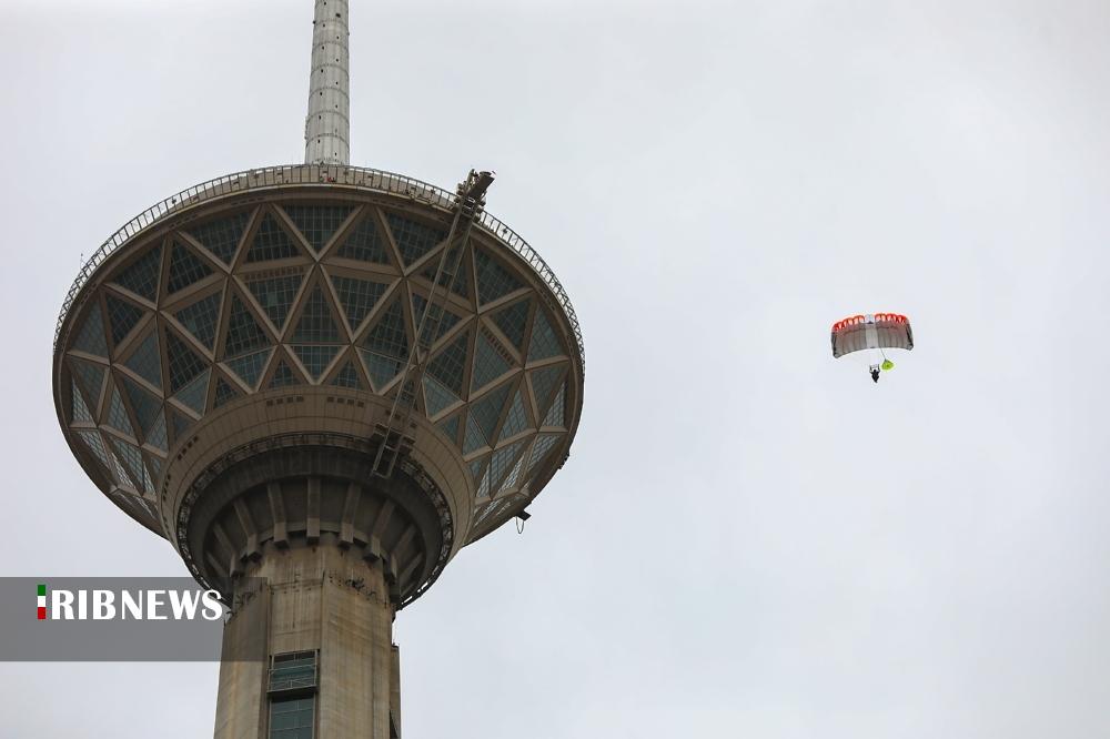 به مناسبت ۱۲ فروردین «روز جمهوری اسلامی» صبح امروز تعدادی از چتربازان اقدام به پرش بِیس جامپ از برج میلاد تهران کردند.