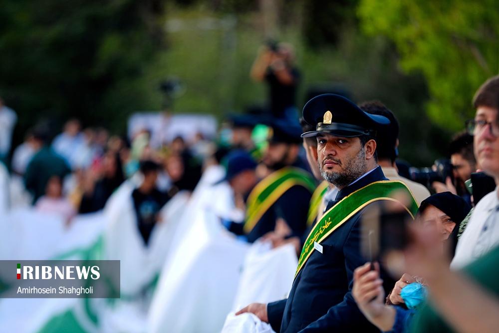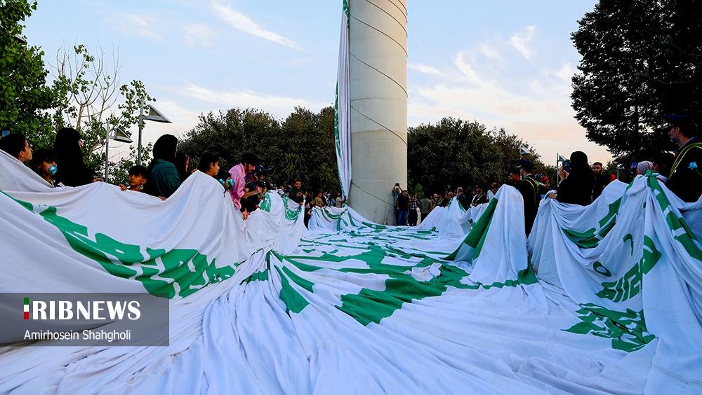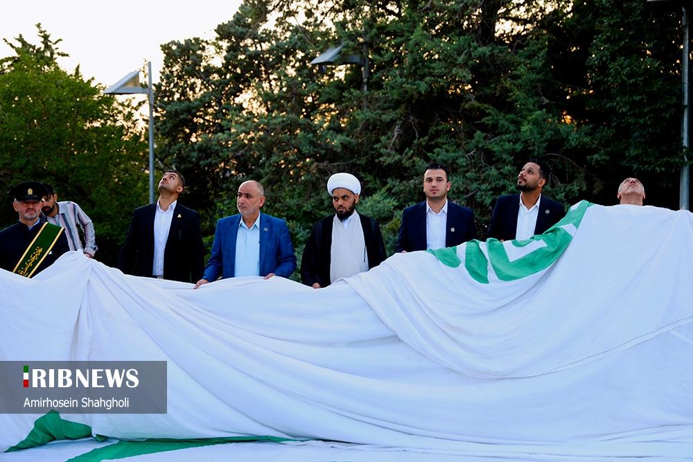 همزمان با فرا رسیدن عید سعید غدیر خم بزرگترین پرچم علوی با ابعاد ۱۰۰۰ متر مربع به همت عتبه علوی و با مشارکت نهادهای فرهنگی و مذهبی، عصر امروز چهارشنبه ۲۱ خرداد ۱۴۰۴ بر فراز پایتخت ایران به اهتزاز درآمد.