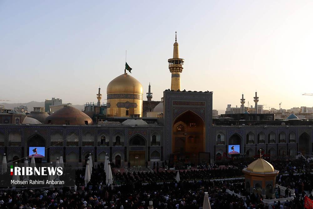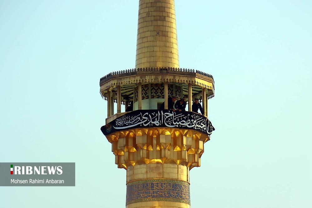 آیین سنتی «اذن عزای حضرت سیدالشهدا (ع)» در آستانه فرارسیدن ماه محرم، همزمان با غروب آفتاب در حرم رضوی برگزار شد و در این آیین پرچم گنبد مطهر و پوشش ضریح امام رضا(ع) نیز به رنگ سیاه درآمد.