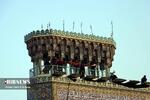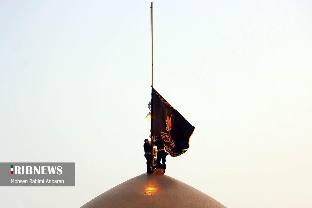 پرچم عزا بر فراز گنبد فیروزهای شاهچراغ (ع)