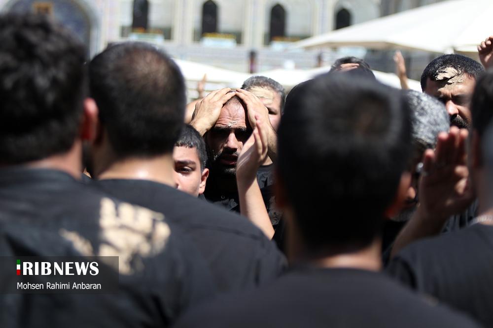 در دهمین روز از ماه محرم و همزمان با عاشورای حسینی، خیابانهای منتهی به حرم رضوی در سوگ سیدالشهدا (ع) سیاهپوش شده است و از کودک و نوجوان تا پیر و جوان، همه در کنار یکدیگر با لباسهای مشکی به عزاداری مشغولند و هیئات مذهبی یکی یکی پس از ورود به حرم امام رضاعلیهالسلام، در جایجای این حرم به اقامه عزا و برپایی مراسم نوحهخوانی پرداختند. همچنین همزمان با ظهر عاشورا و پس از اقامه نماز ظهر و عصر مراسم اقامه نماز بر پیکر مطهر شهیدان «محمدعلی حسن زاده سبزوار» و «مرتضی میثمی» توسط آیت الله علم الهدی در رواق امام خمینی (ره) حرم مطهر رضوی برگزار گردید.