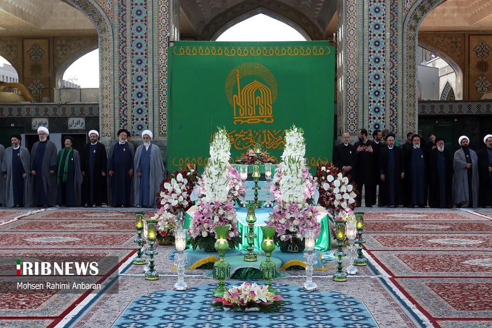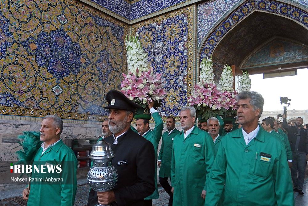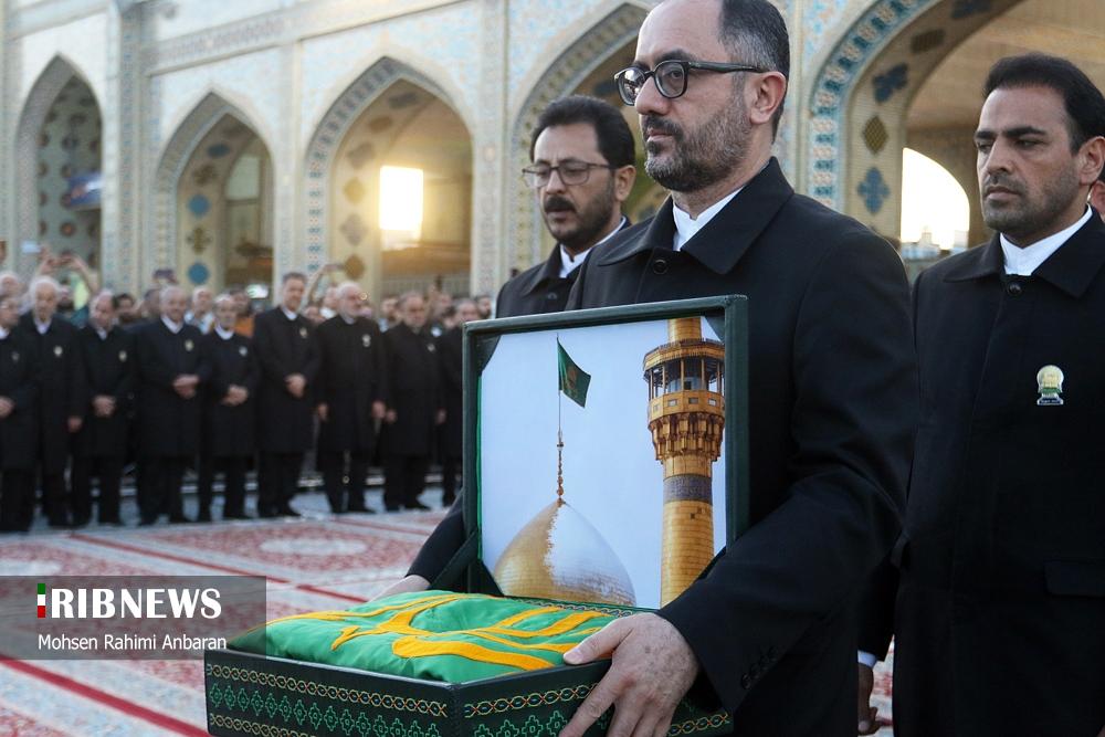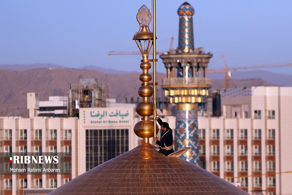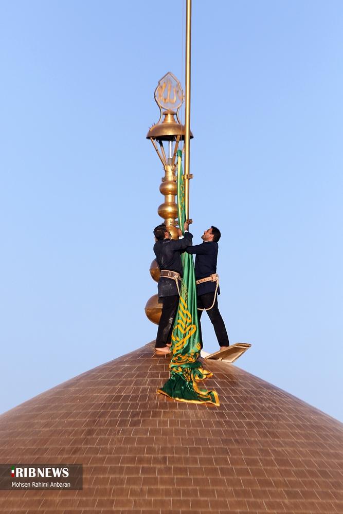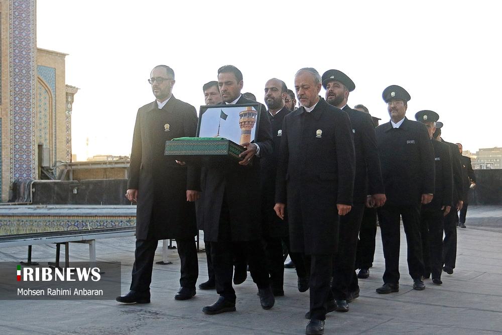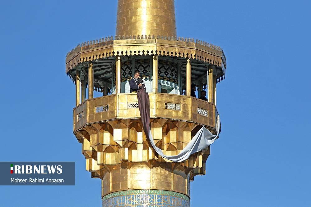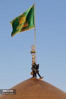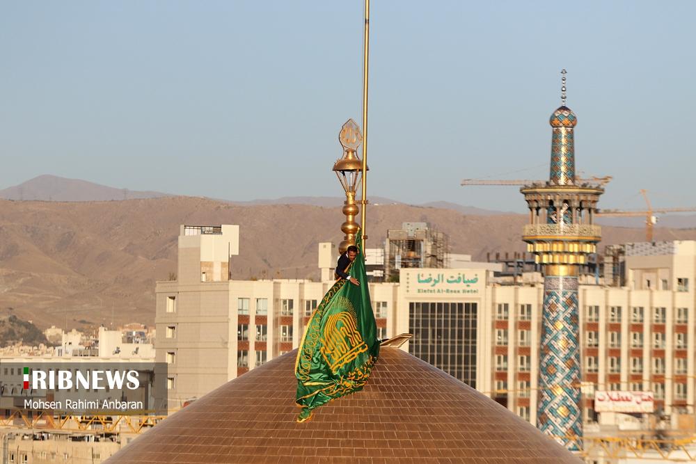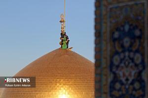 سحرگاه امروز چهارشنبه؛تعویض پرچم گنبد منور رضوی پس از ۶۳ روز در حرم امام رضا (ع) پس از پایان ایام عزاداری محرم و صفر و شهادت امام هشتم علیه‌السلام و همزمان با آغازین روز های ماه ربیع‌الاول انجام شد. این مراسم با حضور خادمان حرم مطهر رضوی صورت گرفته و در آن پرچم سیاه عزاداری با پرچم سبز رضوی که با عبارت "نصرالله من الله و فتح قریب" مزین است، تعویض گردید