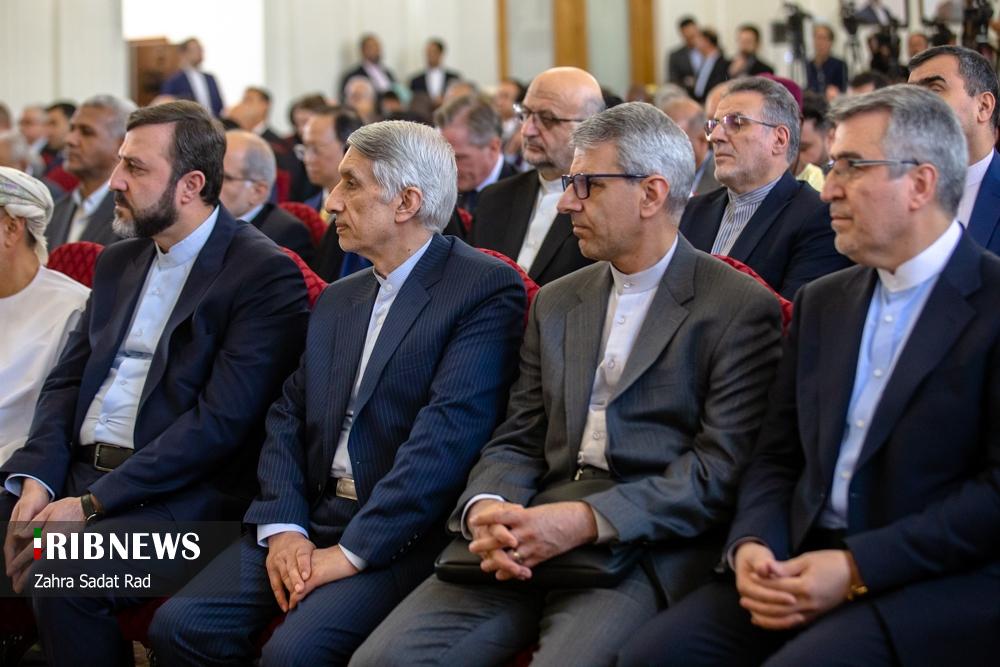 «سید عباس عراقچی» وزیر امور خارجه، صبح امروز یکشنبه ۱۳ مهرماه ۱۴۰۴ با سفرا، کارداران و روسای نمایندگی‌های خارجی و بین‌المللی مقیم تهران در محل وزارت خارجه دیدار و رایزنی کرد.
