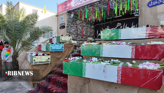 مردم بوشهر همزمان با سالروز شهادت حضرت فاطمه (س)، پیکر ۶ شهید گمنام دفاع مقدس را تشییع کردند.