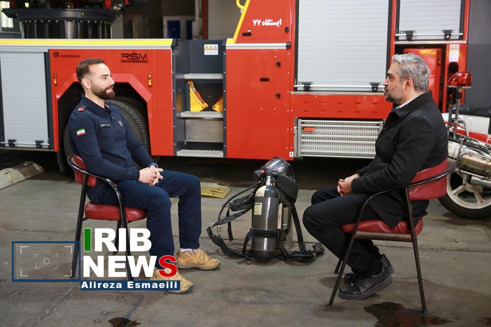 اقدام شجاعانه حمیدرضا طالقانینیا، آتشنشان ایستگاه ۷۷ تهران بار دیگر مسئولیتپذیری و فداکاری آتشنشانان را به نمایش گذاشت. این آتشنشان هنگام عملیات اطفای حریق پاساژ پردیسان، ماسک تنفسی خود را روی صورت بانوی گرفتار در دود و آتش قرار داد و با این کار، جان او را نجات داد. عوامل برنامه بدون تعارف برای گفتوگو با این آتش نشان به سراغ او رفتند که در تصاویر زیر پشت صحنه آن را میبینید و امشب در بخش خبری ۲۰:۳۰ میتوانید شاهد این گفتوگو صمیمانه باشید.